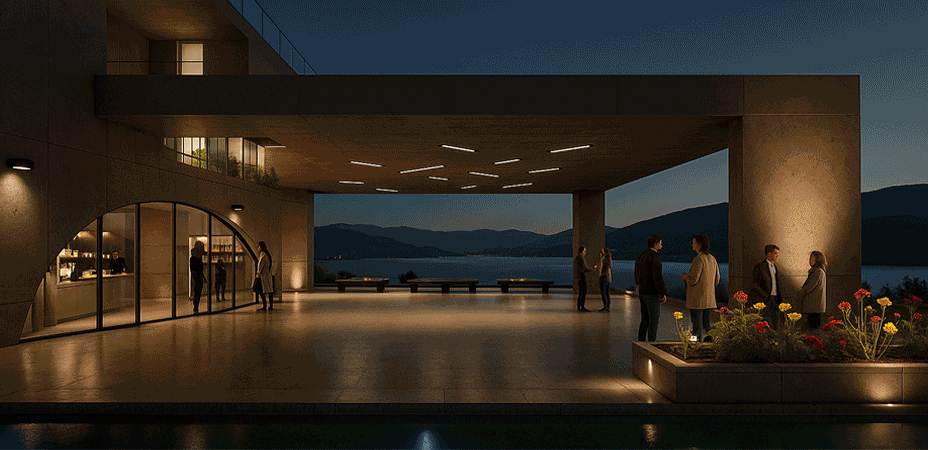 Our state-of-the-art winery architecture sets a new benchmark for the Okanagan, blending modern design with timeless cultural elements. Every corner tells a story of artistry, innovation, and the land that inspires it.